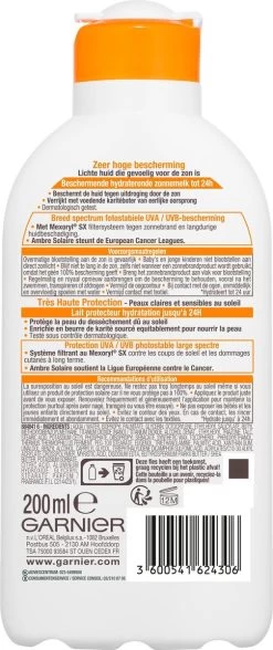 Ontdek Garnier’s zonbeschermingslotion, van Ambre Solaire. Deze waterbestendige, olievrije zonnecrème, die uw huid beschermt, is verkrijgbaar in 30 SPF en 50 SPF. Nu krijg je 24 uur hydratatie met hoge bescherming.