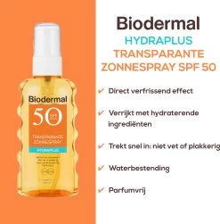 Biodermal Zonnebrand – Hydraplus – Transparante Zonnespray – Zonnebrand Spray SPF 50 – 175ml