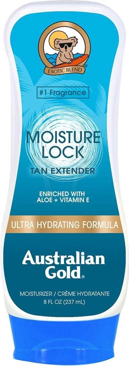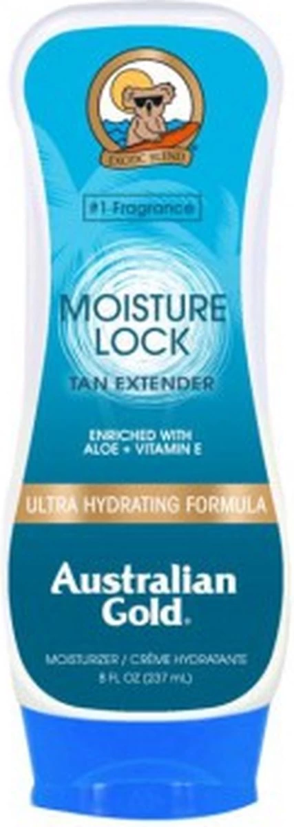Een rijke, volle en verzorgende Australian Gold aftersun! Met o.a. Aloë Vera, Australische tea tree olie, vitamine E, zonnebloemzaadextracten en olijfolie extracten. Moisture Lock houdt het vocht in de huid vast, voedt, verzorgt, hydrateert en houdt je huid zacht, glad, soepel en gezond. Smeert gemakkelijk uit en trekt direct in de huid. De toegevoegde ”tan extender” helpt om je kleurtje langer te behouden.