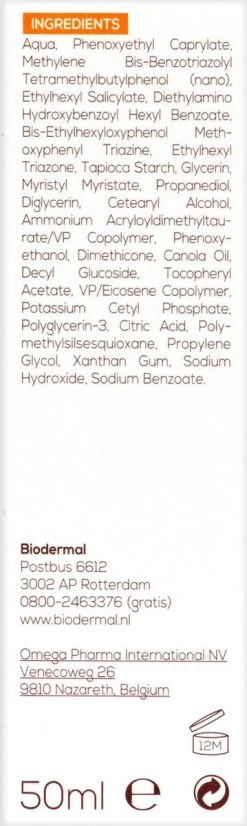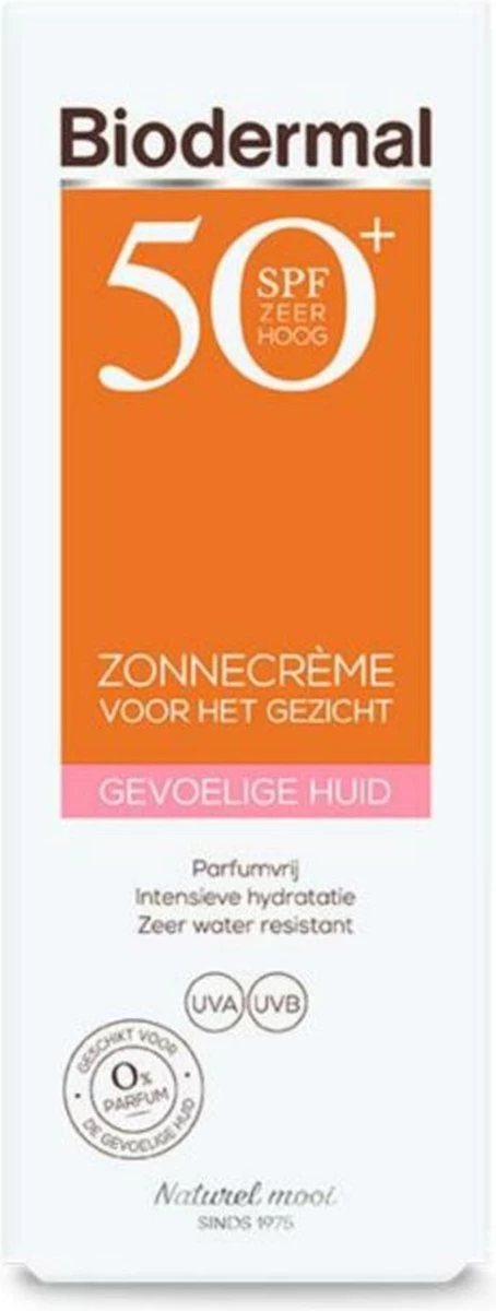 Biodermal gevoelige huid Zonnecrème gezicht SPF 50 is speciaal voor het gezicht ontwikkeld. De zonnecrème is parfumvrij en voorzien van geavanceerde UVB-/UVA-filters voor een directe en aanhoudende bescherming. Het Triple Moist Complex in de zonnecrème zorgt voor directe, diepe, intensieve en langdurige hydratatie van de huid. Deze formule is geschikt voor de gevoelige huid, is niet plakkerig of vet en trekt snel is.