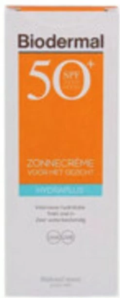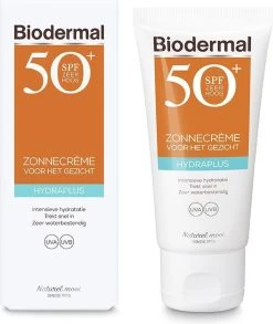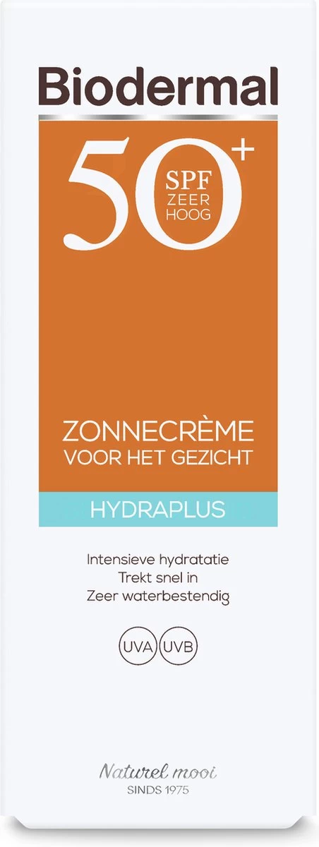 Biodermal Hydraplus zonnecrème SPF 50 voor het gezicht met geavanceerde en fotostabiele UVA/UVB filters voor onmiddellijke bescherming. De formule trekt snel in en is niet vet of plakkerig.