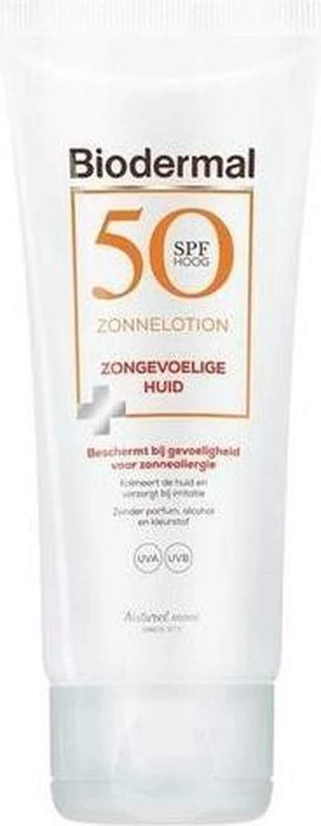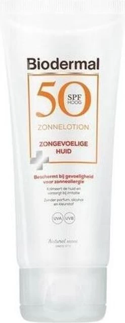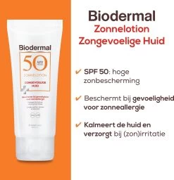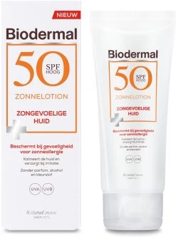 Biodermal Zonnelotion voor de Zongevoelige Huid SPF 50 is speciaal ontwikkeld voor de huid die gevoelig is voor zonneallergie. De zonnelotion bevat zorgvuldig geselecteerde en fotostabiele UVA/UVB filters voor onmiddellijke bescherming tegen schadelijke effecten van zonnestraling. Deze formule bevat een verhoogde concentratie UVA-filters om zo te helpen beschermen tegen huidreactie door de zon. Panthenol en allantoïne hebben een verzachtend en kalmerend effect op de (zon)geïrriteerde huid.