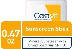 Een zonnebrandcrème biedt UV-bescherming voordat u wordt blootgesteld aan de zon – en is ook effectief om onderweg bij te werken. Onze zonnebrandcrème met zink- en titaandioxide geeft je een handige, lichtgewicht, 100% minerale zonnebrandcrème die de schadelijke UVA / UVB-stralen van de zon weerkaatst. CeraVe Sunscreen Stick met breedspectrum SPF 50 bevat zinkoxide en titaniumdioxide UVA- en UVB-filters in een geurvrije, olievrije en handige zonverzorgingsformule. Het is perfect om altijd en overal te gebruiken en is geschikt voor alle huidtypes, inclusief de gevoelige huid. Geformuleerd met drie essentiële ceramiden die de natuurlijke barrière van de huid helpen herstellen, is onze SPF 50 zonnebrandcrème stick tot 40 minuten waterbestendig, en het microfijne zinkoxide geeft je een krachtige bescherming tegen de zon die zich gemakkelijk en gelijkmatig verspreidt en tegelijkertijd een heldere finish achterlaat.