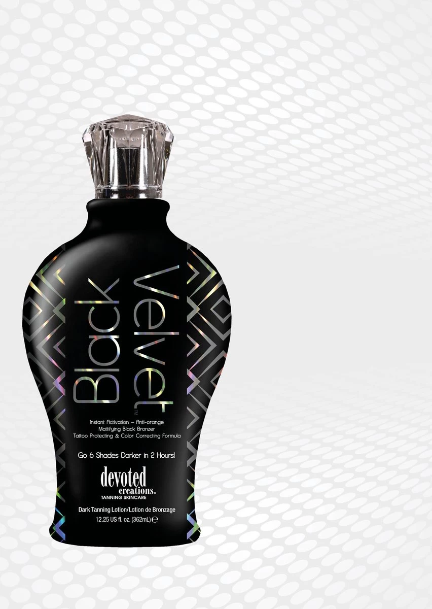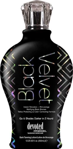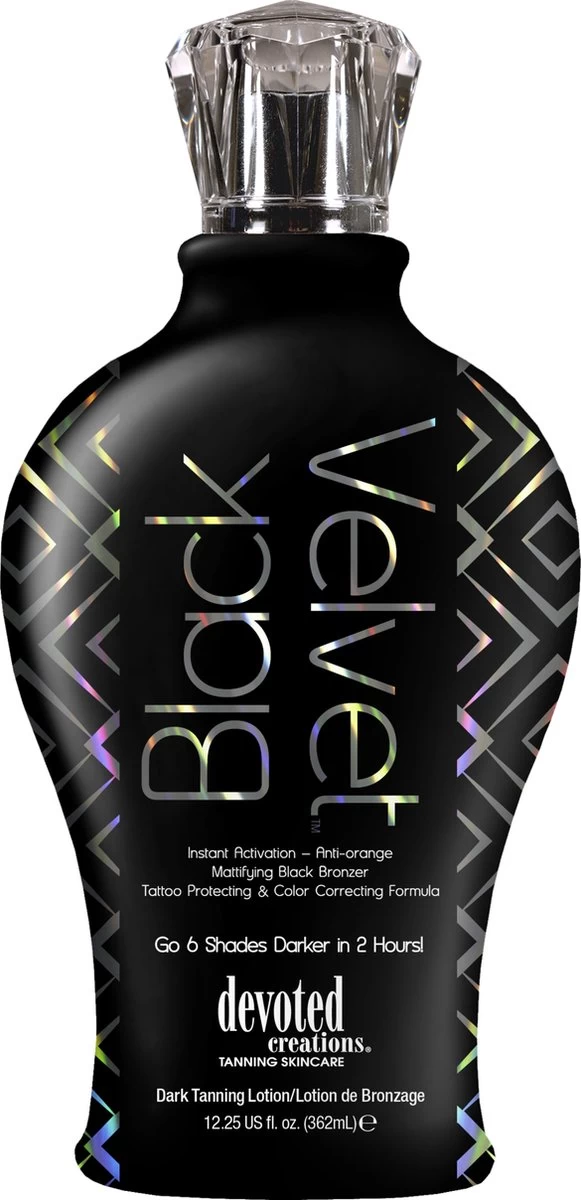 De black Velvet met Orchid Noir geur is een bruiningsversneller met maar liefst 170-voudige DHA bronzer, natuurlijke en donkere cosmetische bronzers! Dit is ongekend hoog. Door het ingrediënt Melatime wordt de bruining nog extra geboost. De charcoal extracten zorgen ervoor dat overmatige olie op de huid wordt geabsorbeerd, en roodheid en acné worden tegengegaan. De Tattoo & Color Fade Protecting formule beschermd de kleur van eventuele tattoos.