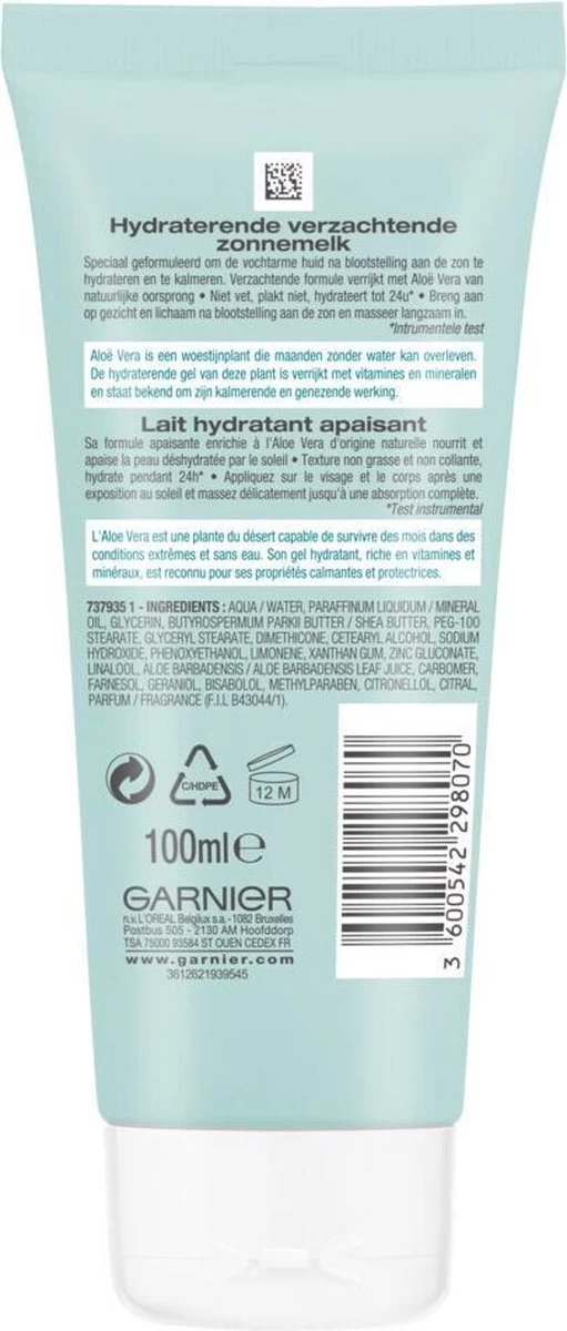 Hydraterende verzachtende zonnemelk in een reisformaat om overal mee naartoe te nemen! De aftersun in reisformaat is speciaal geformuleerd om de vochtarme huid na blootstelling aan de zon te hydrateren en te kalmeren. De verzachtende aftersun formule is verrijkt met hydraterende Aloë Vera van natuurlijke oorsprong. Aloë Vera is een woestijnplant die maanden zonder water kan overleven. De hydraterende gel van deze plant is verrijkt met vitamines en mineralen en staat bekend om zijn kalmerende en genezende werking.
