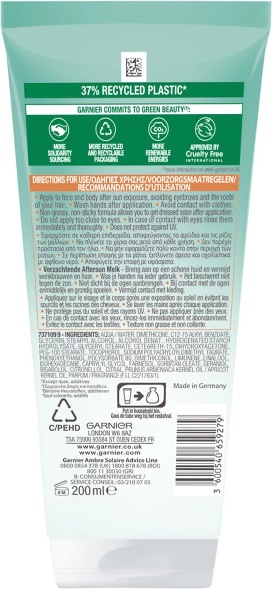 Garnier Ambre Solaire Aftersun Melk met Zelfbruiner is een ideale oplossing wanneer je op zoek bent naar een gebruinde teint wanneer de zon niet schijnt. Het versterkt & verlengt jouw bruining. Daarbij is de formule niet vet en niet plakkerig.