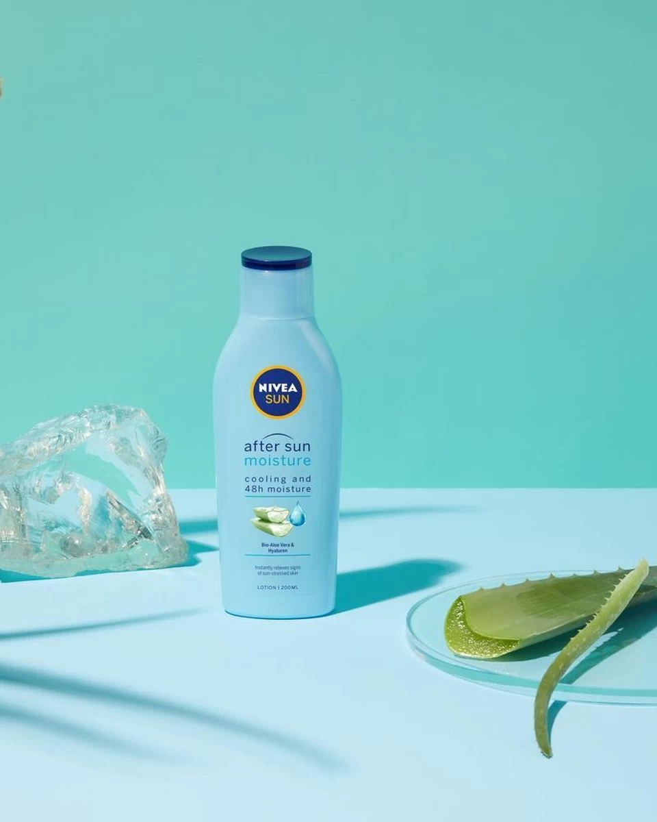 NIVEA SUN Hydraterende & Kalmerende Lotion is verkoelt, verfrist en verzacht de huid na blootstelling aan de zon om direct tekenen van een door de zond belaste huid te verlichten. De lichte formule met Bio-Aloë Vera en Hyaluron biedt 48 uur hydratatie en helpt de vochtbalans van de huid te herstellen. Bovendien helpt de After Sun bij het vermijden van het vervellen van de huid. De niet vette formule trekt snel. Dit product is vrij van mineralen olie en parabenen. Vertrouw op het No.1* merk in zonbescherming. Alle Europese NIVEA Sun formules zijn vrij van octinoxate en oxybenzone, en respecteren daarmee de Hawaïaanse Wet**.