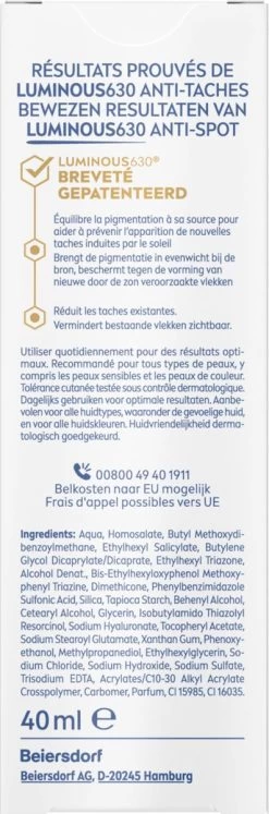 - Spot Control – Met het gepatenteerde Luminous630 ingrediënt om door de zon veroorzaakte pigmentvlekken te voorkomen en zichtbaar te verminderen voor een egalere en stralende teint.