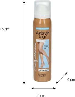 Sally Hansen Airbrush Legs Lightglow is een langhoudende spray voor perfect glanzende benen. Je creëert egaal bruine benen in een handomdraai. Er ontstaat een panty effect zonder een panty te dragen. Zo kunt u ook in de winter prachtige bruine benen hebben alsof u op vakantie bent geweest! De zelfbruiner heeft een langdurig effect en sluit goed aan op uw benen zonder dat u een egale en mooie bruine kleur krijgt op uw benen. De zelfbruiner laat geen strepen achter.