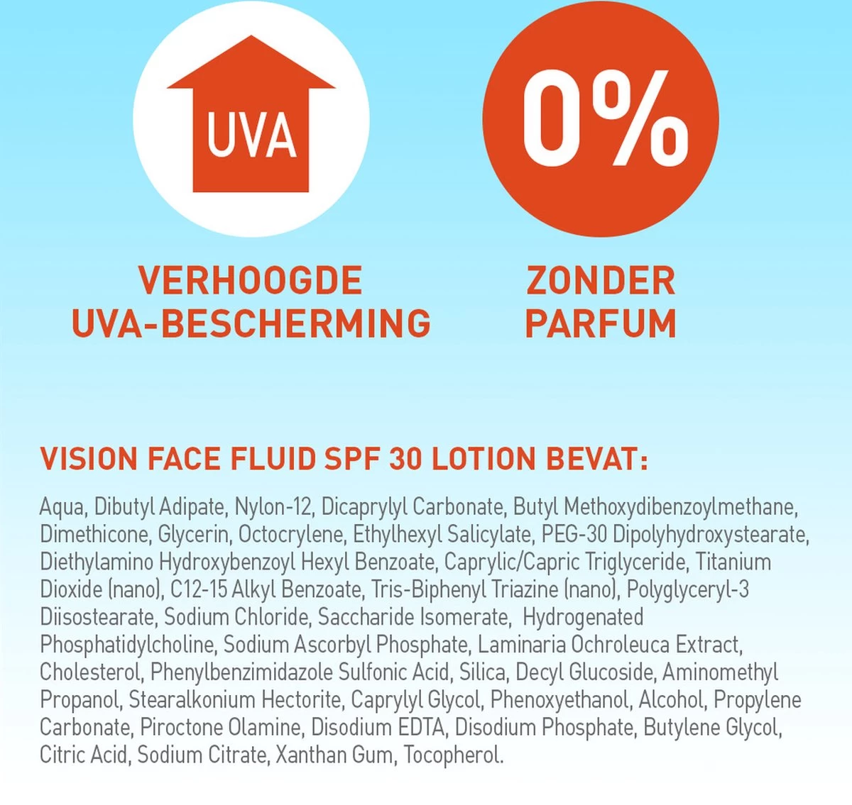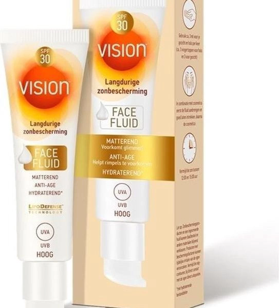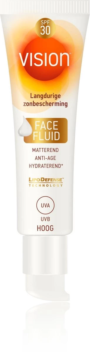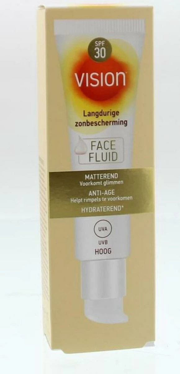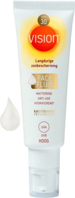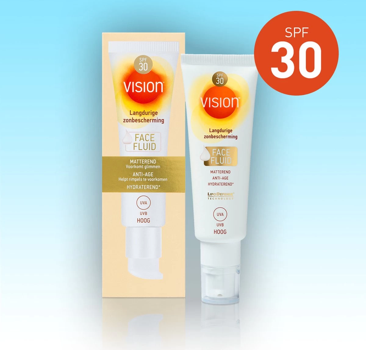 Vision Face Fluid SPF 30 Langdurige zonbescherming voor je gezicht. Anti-age, matterend en hydraterend*. *met hydraterende bestanddelen