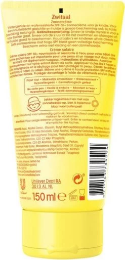 - Zwitsal Zonnecrème SPF 50+ geeft een waterresistente bescherming.